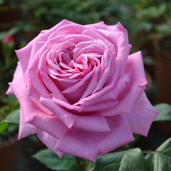 Fiore grande, pieno (40 petali), a coppa, colore rosa tenero tendente al lilla, rovescio bianco, foglie grandi, verde intenso, lucide, cespuglio eretto, 120, rifiorenza continua e abbondante, profumo intenso fruttato (banana), ideale per aiuole in gruppi e da fiore reciso; resistente alle malattie.