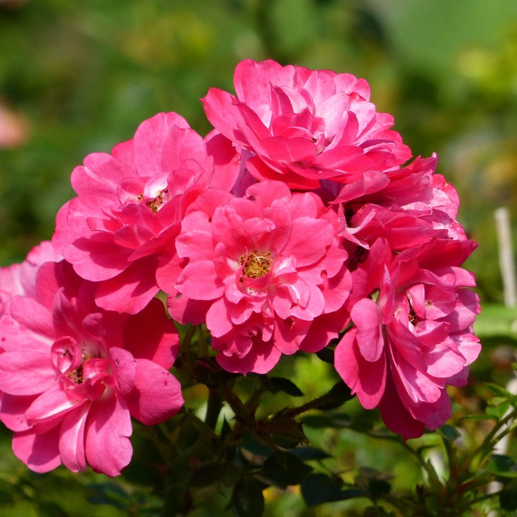 Fiore medio, semi-doppio, a rosetta, a mazzi da 6 a 10, colore rosa carico, più chiaro al centro, foglie medie, verde medio, ovali, molto fitte, cespuglio ampio, 40-50, fioritura precoce, abbondante e di lunghissima durata, rifiorenza continua e abbondante, leggermente profumata; poche spine di media consistenza; utilizzare per aiuole e bordure; buona resistenza alle malattie.