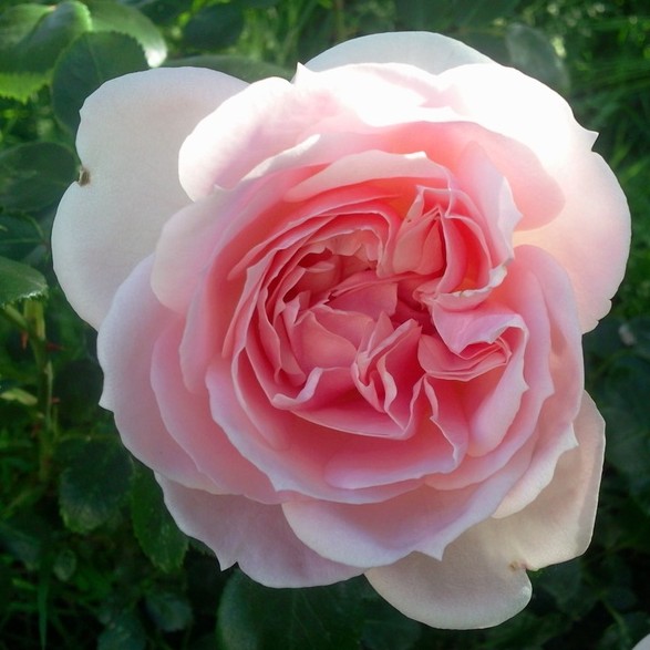 Fiore grande, doppio, a coppa, a mazzi, colore rosa, rovescio crema, foglie grandi, scure, lucide, cespuglio compatto, 80/100 cm..