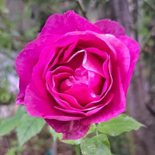 Fiore molto grande (11-12 cm.), molto pieno (144-153 pet.), a coppa, da 1 a 3 per gambo, colore porpora ciclamino largamente soffuso di rosso rubino, foglie grandi, verde medio, semi-lucide, ovali, molto fitte, semi-eretto, molto vigoroso, 70-90, rifiorente continua e abbondante, di lunghissima durata, profumo intenso, poche spine, da piantare in gruppi, ottima resistenza alle malattie.